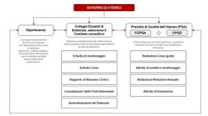 Superiore (ESG). In questa prospettiva, ogni Corso di Dottorato adotta procedure trasparenti di definizione degli obiettivi formativi e dei profili in uscita, pianifica e organizza attività didattiche e di ricerca adeguate e coerenti con la propria missione, monitora i risultati conseguiti e attua interventi di miglioramento basati su evidenze. Il coinvolgimento attivo dei dottorandi e dottorande, dei docenti e del Collegio dei Docenti rappresenta un elemento essenziale del ciclo di AQ, insieme al dialogo continuo con il Presidio della Qualità di Ateneo, con il Nucleo di Valutazione e con gli organi istituzionali competenti. L’AQ del dottorato contribuisce così a garantire percorsi formativi rigorosi, internazionalmente riconoscibili e pienamente rispondenti alle esigenze della ricerca avanzata e della società, assicurando un miglioramento continuo dell’esperienza formativa e della qualità dei risultati scientifici prodotti.